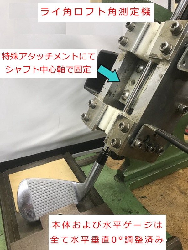 ・シャフト中心軸でのライ角ロフト角測定および調整を行っていること