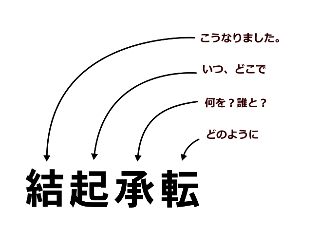 タイプB・・・結論を話してから、その経緯を説明するタイプ(結起承転)